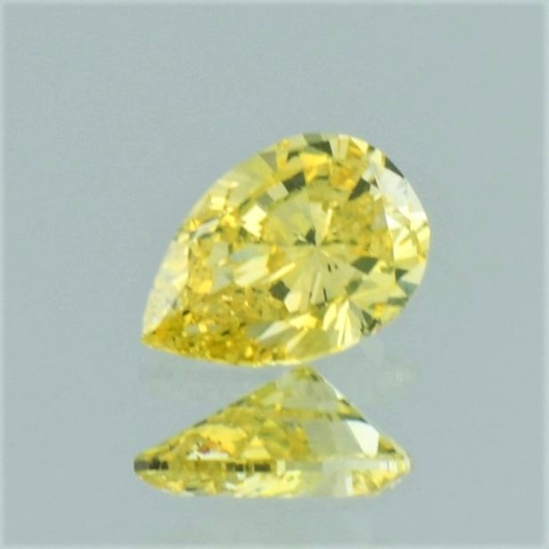 Sehr gut geschliffener Diamant-Tropfen mit einer besonders lebhaften, leicht grünlich gelben Naturfarbe und bester Brillanz.