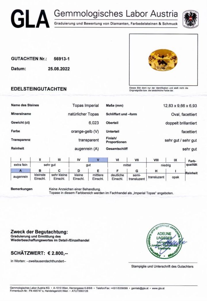 Very good standard oval cut Imperial-Topaz with nice colour (orangy yellow, slightly salmon) and best clarity.