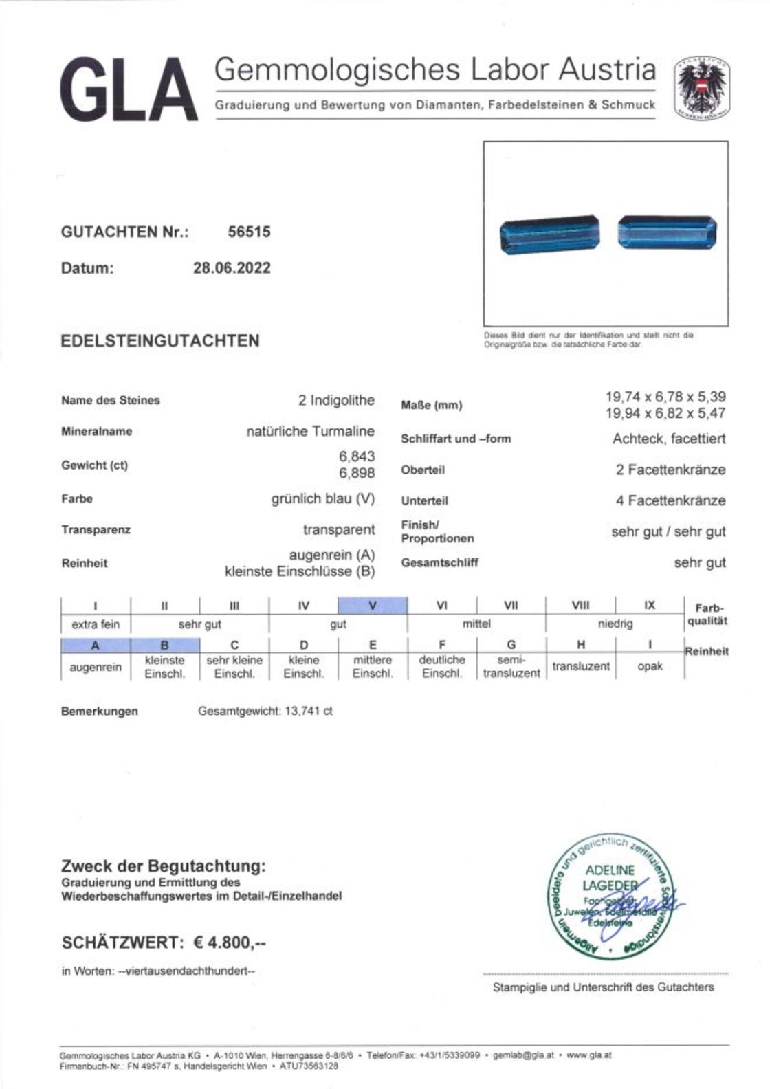 Sehr gut geschliffenes Indigolith Pärchen mit kräftigem Blauton - ideal z.B. für hochwertigen Ohrschmuck! >BR>Unabhängig erstelltes GLA Edelsteingutachten mit allen Detailangaben sowie aktuellem Wertnachweis in Höhe von € 4.800,- wird beigestellt.