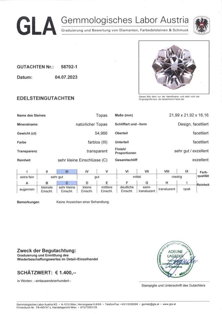 GLA Expertise mit allen Detailinformationen inkl. aktuellem Wertnachweis in Höhe von € 1.400,- wird beigestellt.